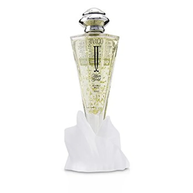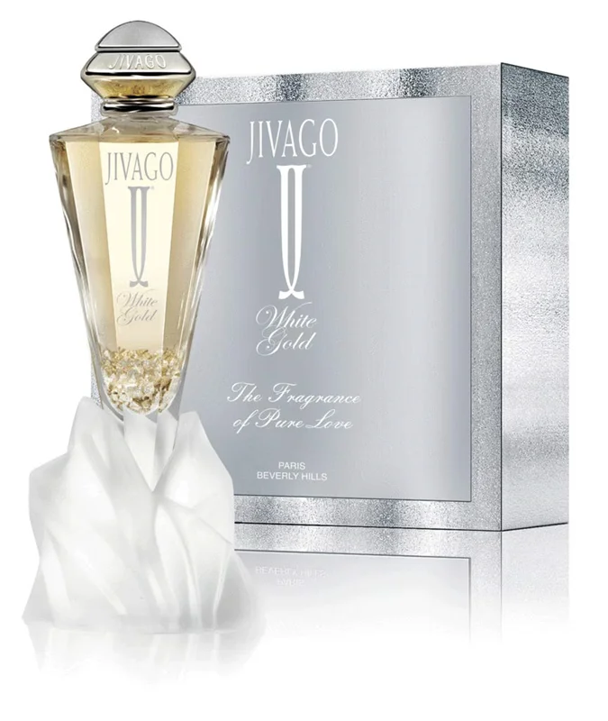 عطر زنانه وایت گلد توسط برند ژیواگو در سال 2011 وارد بازار شد. این عطر زنانه با رایحه گلهای معطر و طراحی چشم نواز مناسب خانمهای شیک پسند است.بطری عطر زنانه ژیواگو وایت گلد از شیشه شفاف ساخته شده و به شکل یک مخروط با اضلاع مختلف است. نوک این مخروط پایین بطری را تشکیل میدهد که برای حفظ ایستایی آن یک پایه به شکل گل برایش تعبیه شده است. درون بطری عطر تکههای تزئینی طلا وجود دارد و رنگ مایع عطر نیز طلایی ملایم میباشد. درل این عطر فلزی بوده و جعبه آن نیز نقرهای رنگ است.